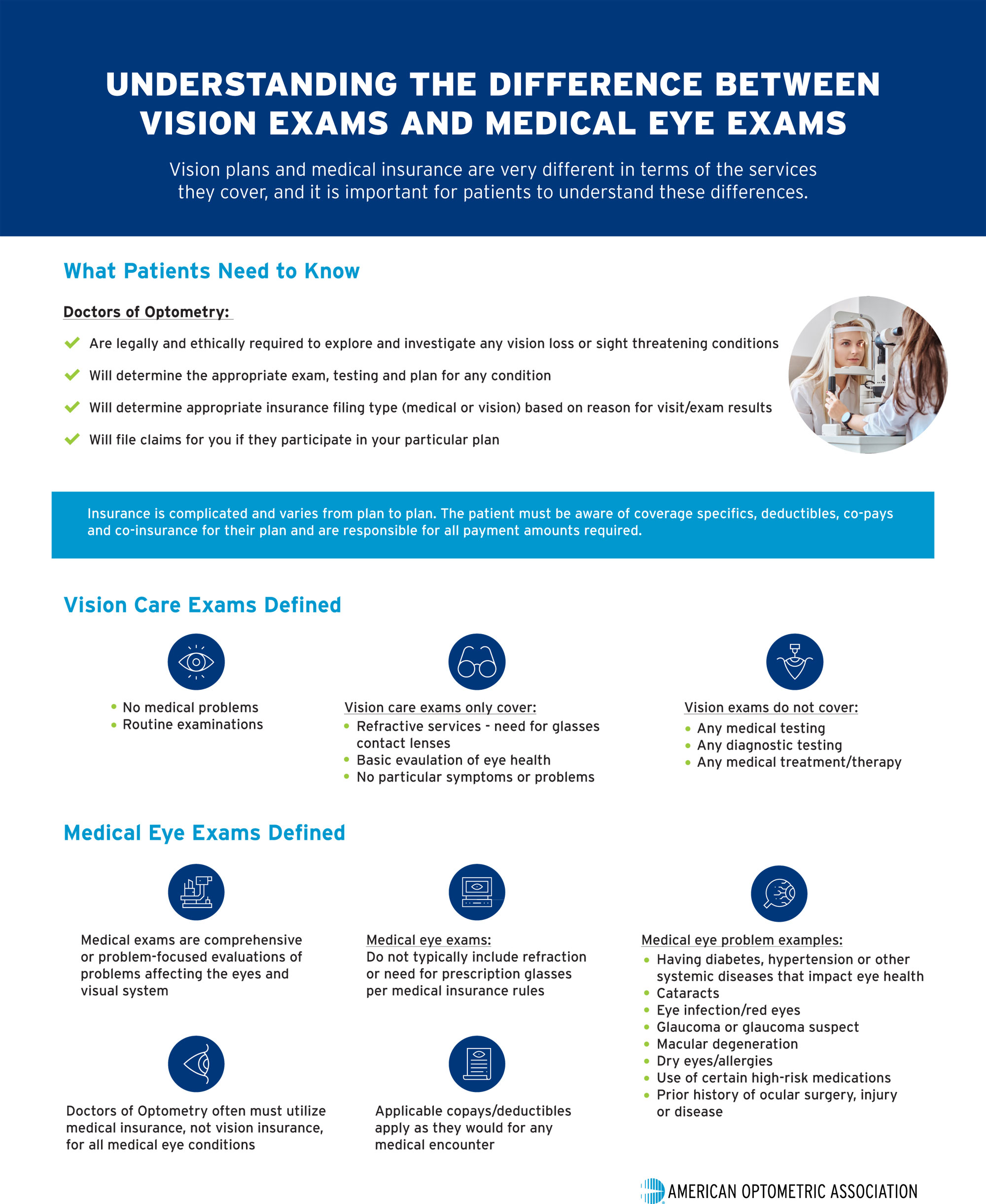 Separate from vision insurance plans, your medical insurance such as Blue Cross, Blue Shield, Kaiser Permanente, United Health and Medicare covers medical eye conditions. Medical eye conditions include: Conjunctivitis, Acute Red Eye, Blepharitis, Dry Eyes, Sjogren’s Syndrome, Keratoconus, Glaucoma, and Retinal conditions such as Diabetic Retinopathy, Hypertensive Retinopathy, Macular degeneration and Retinal detachments. Please see American Optometric Association (AOA) explanation of what is covered with vision eye exams and what medical eye exams (typically your medical insurance) cover. Moderne Eye Optometry provides medical eye care services for VSP Primary Eyecare. All other medical eye services are private pay.